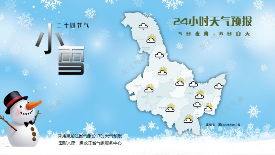 黑龙江省气象台2025年12月5日17时发布5日夜间至8日白天全省天气预报: