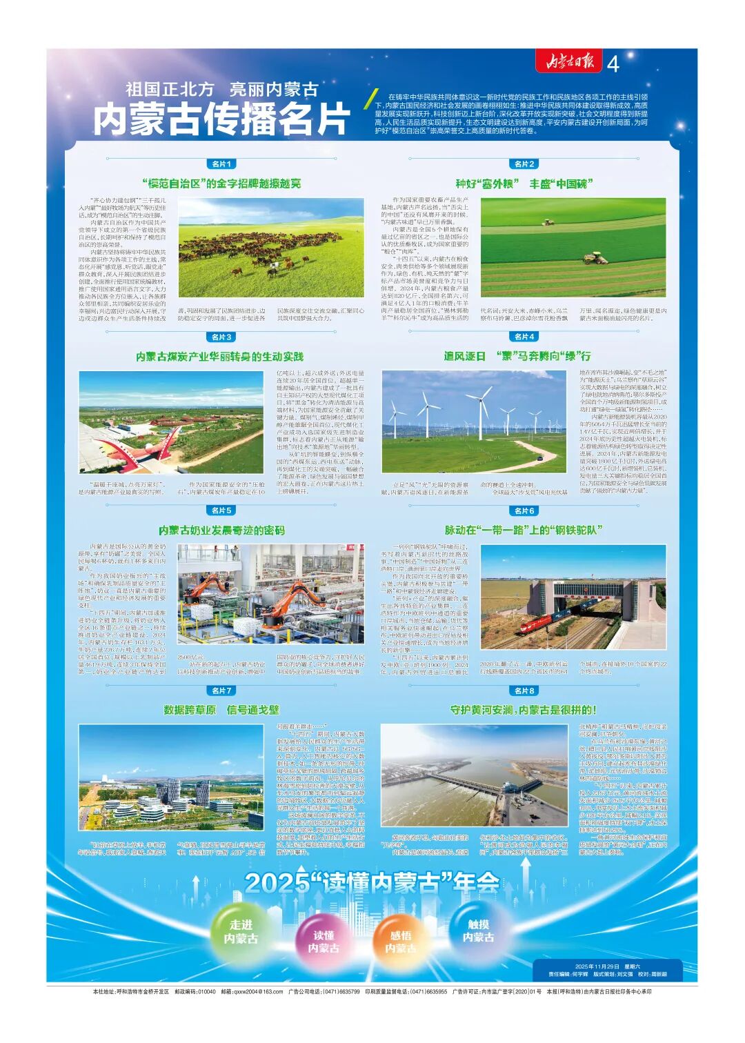 在铸牢中华民族共同体意识这一新时代党的民族工作和民族地区各项工作的主线引领下,内蒙古国民经济和社会发展的画卷栩栩如生:推进中华民族共同体建设取得新成效,高质量发展实现新跃升,科技创新迈上新台阶,深化改革开放实现新突破,社会文明程度得到新提高,人民生活品质实现新提升,生态文明建设达到新高度,平安内蒙古建设开创新局面,为呵护好“模范自治区”崇高荣誉交上高质量的新时代答卷。