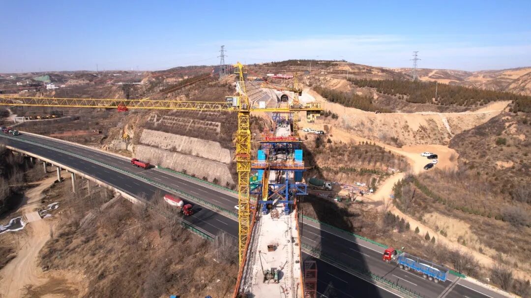 神木至瓦塘铁路正线长度75.17公里,设计时速120公里,是连接陕西神木与山西兴县瓦塘镇的国家一级单线电气化铁路,设计年运力达5000万吨。其中作为关键控制性工程之一的齐家庄大桥位于陕西省榆林市府谷县境内,全长254.39米,需跨越连接华北与中西部地区的能源、物流运输干线——沧州至榆林高速公路,项目建设安全风险高、施工难度大。