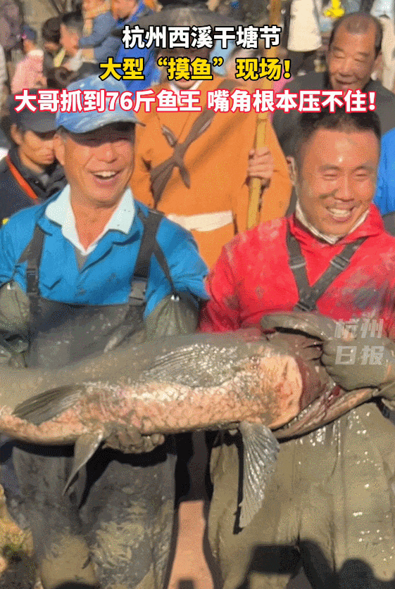 今天上午,2025杭州西溪干塘节正式拉开帷幕,西溪湿地鱼塘里变身大型“摸鱼”现场,大哥第一次来就抓到了76斤的“鱼王”!