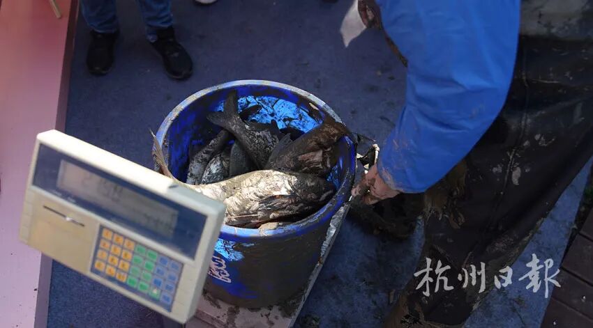 “得从鱼嘴伸进去,抠住鱼鳃,它就老实了。”大哥从小在西溪边长大,抓鱼已经是“老本行”了。身边的小女儿满脸骄傲地抢话:“我爸爸从小就抓鱼!”