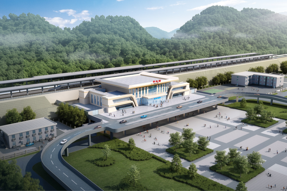 平远站位于广东省梅州市平远县,站房形式为线侧下式,包含出站层、进站层、夹层。站场规模为2台4线,站房建筑面积3995平方米。站房设计融合“苏区橙乡、平安致远”的地域文化理念,致力打造成为展示地方形象的重要窗口。