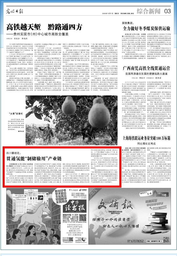 光明日报攀枝花12月6日电(记者周洪双、李晓东)2025氢能产业链生态大会5日在四川省攀枝花市举行。记者从会上获悉,攀枝花市已培育涉氢企业19家,氢能“制储输用”产业链条基本贯通,装备制造取得突破。