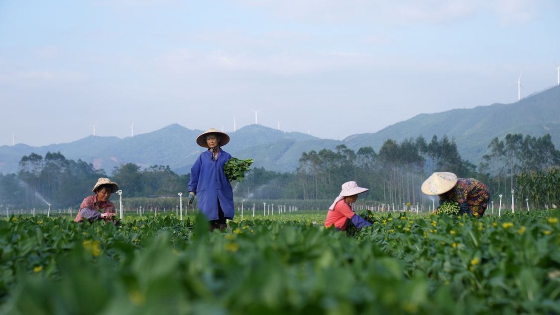 11月30日,在位于钟山县的贺州农投供港蔬菜基地,数十名工人正忙着采摘菜心。该基地新鲜蔬菜以“当天采、次日达”的速度,通过供港冷链直通车直送粤港澳大湾区,保障“菜篮子”供应。黎豪图 摄