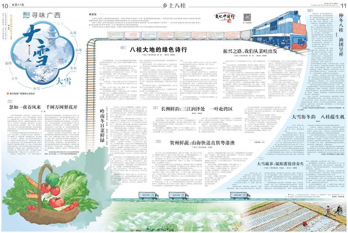 2025年12月7日广西日报10—11版“二十四节气·寻味广西|大雪”连版截图
