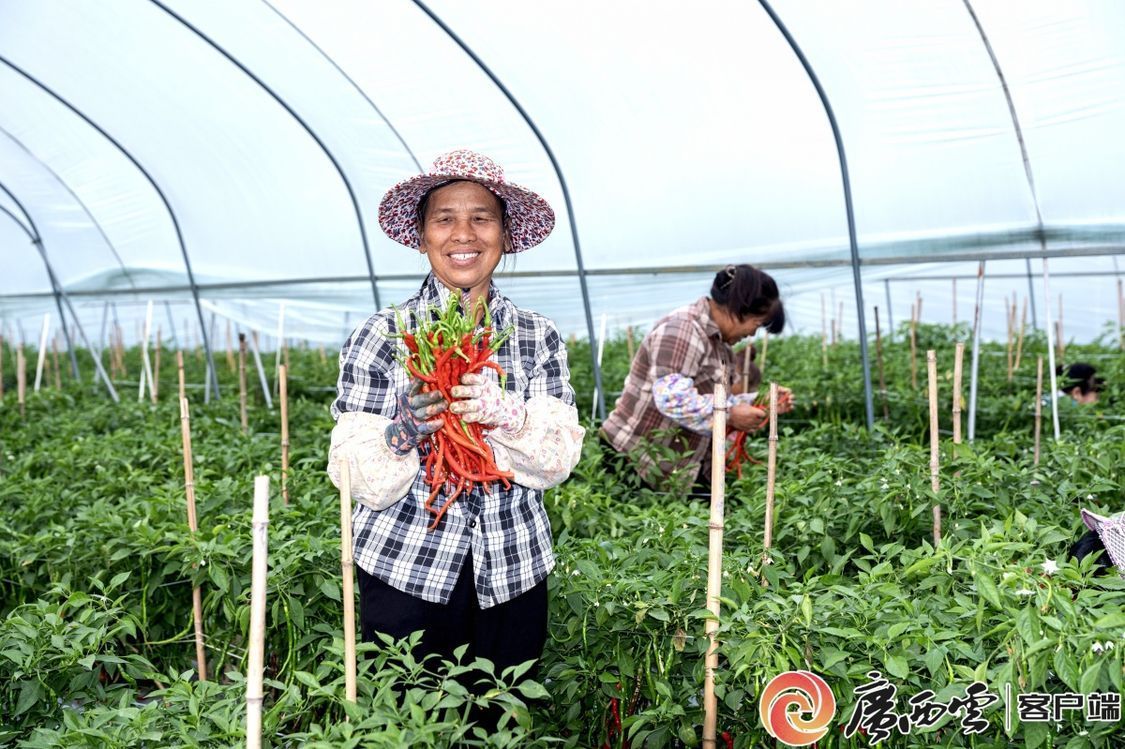 田东县平马镇百谷红军村红线椒基地,村民摘收忙。 周金鹏 摄