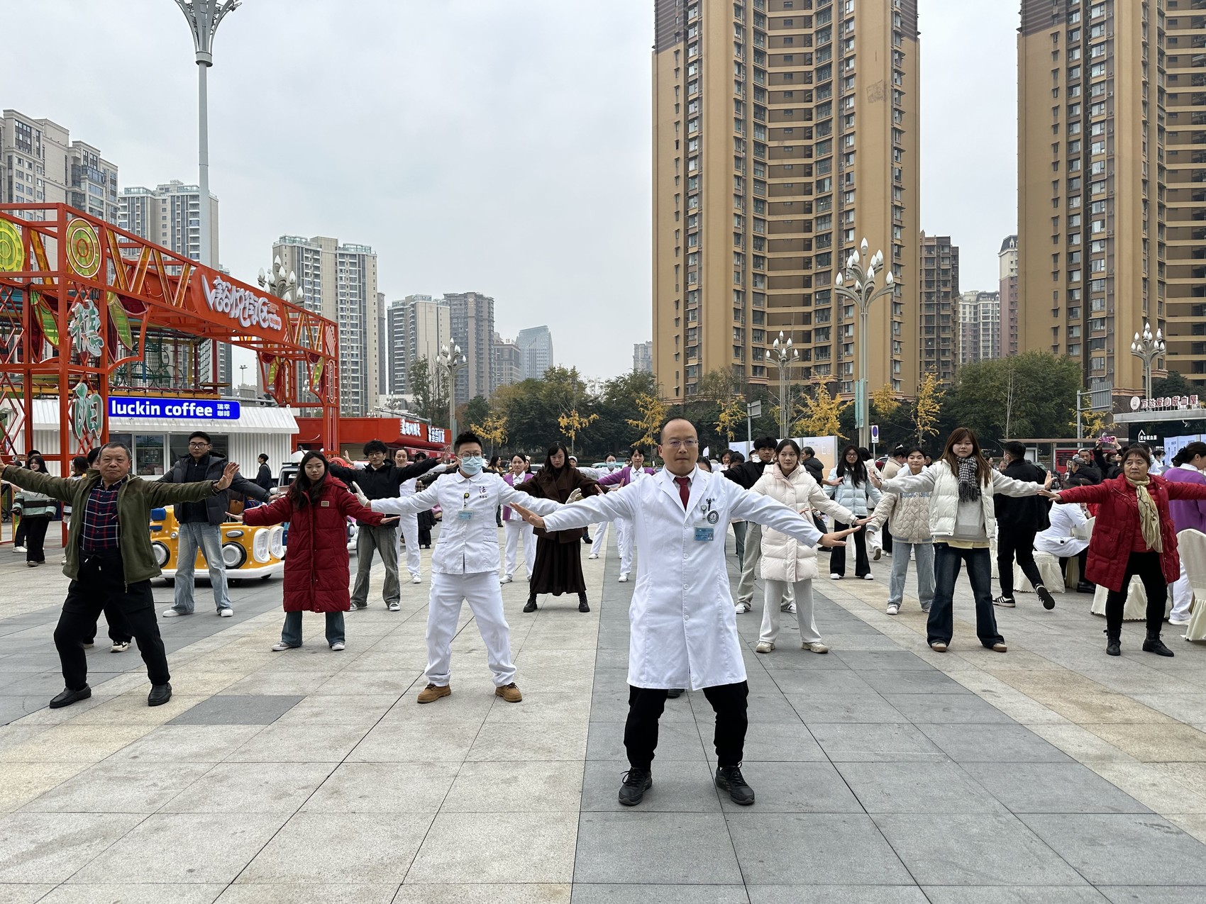 两手托天理三焦,双手上托,调理三焦气血,增强心肺功能。左右开弓似射雕,模仿射箭动作,拉伸肩背,益气养肺……活动现场,德阳市人民医院中医科主治中医师樊聪俐现场带教八段锦,给市民们送去了传统养生功法。