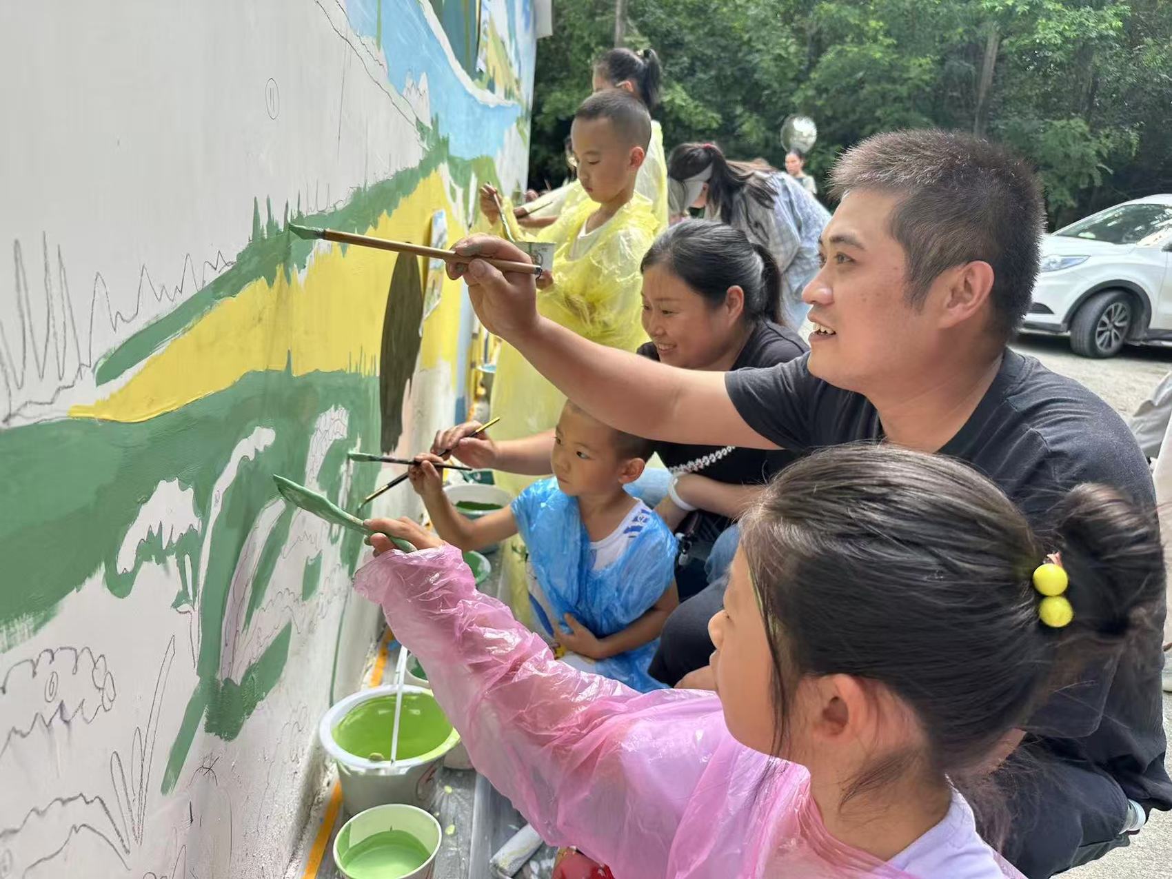 驻村艺术家与村民开展“共绘丰收”主题墙绘。