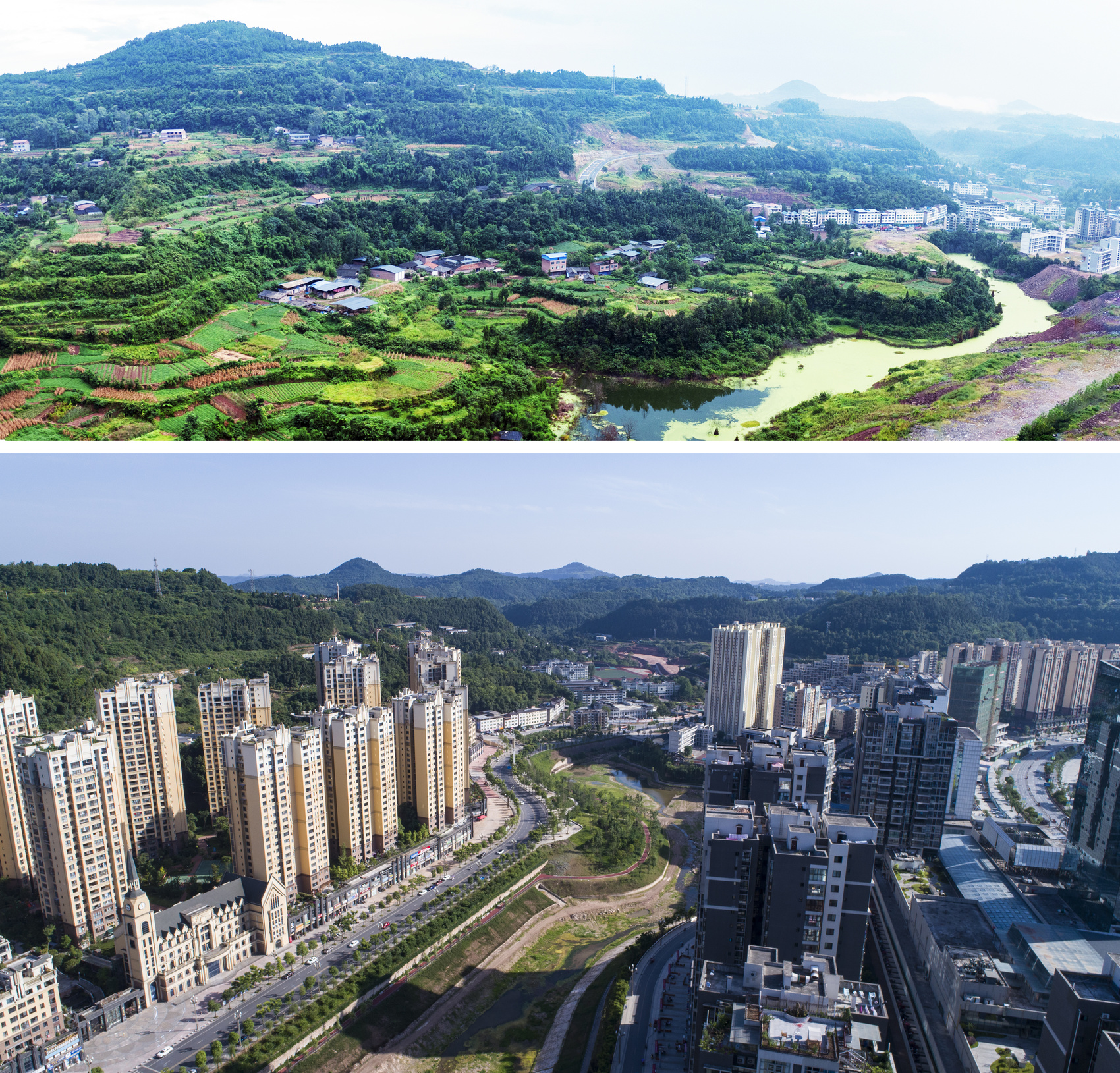 巴中津桥湖湿地公园前后对比(谢学程摄)