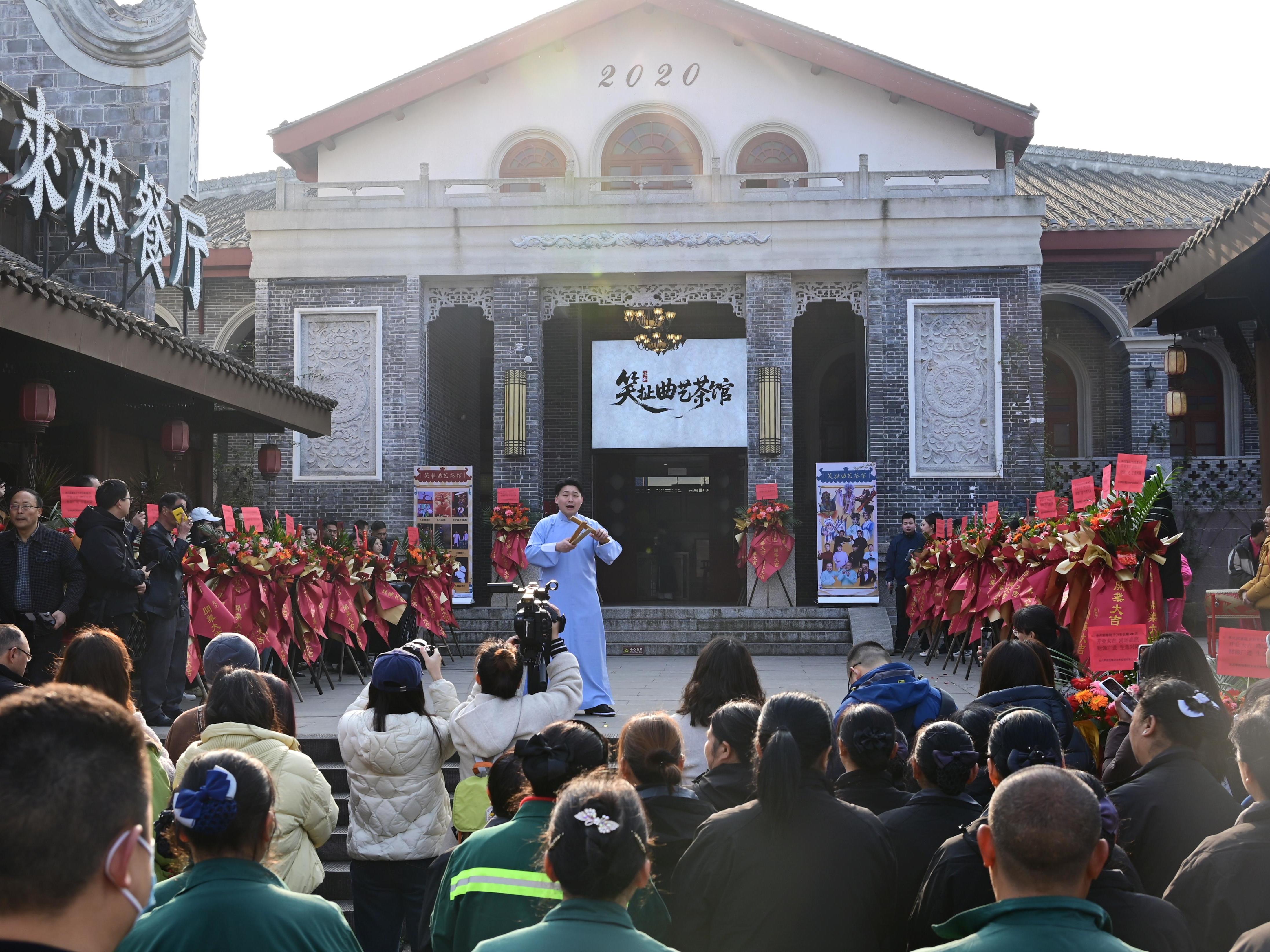 于是,一阵阵笑声越过田埂、穿过异木棉花的缝隙,在村头巷尾荡漾开来——这里,是“昔哈社”首场脱口秀的现场。