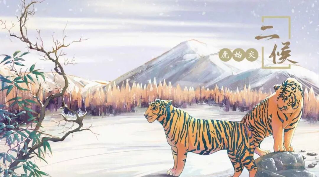 大雪时节,老虎会感知到微妙的自然节律,开始进行交配。古人将这一现象视为阴阳转化的象征,在万物沉寂的冬日里,暗藏着生命复苏的希望,让苍茫的寒冬多了一丝生机。