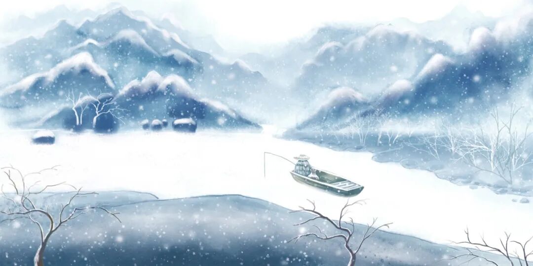 连绵的群山里看不到一只飞鸟的踪迹,纵横交错的道路上也没有行人的身影。江面上漂着一叶孤舟,舟中坐着一位身披蓑衣、头戴斗笠的老翁,独自在漫天风雪的寒江上垂钓。这首诗以极简的笔触勾勒出大雪时节的极致苍茫。“鸟飞绝”“人踪灭”将冬日的寂静推到极致,而寒江独钓的老翁,却在这片空寂中生出孤高的意韵。没有直接写雪的厚重,却处处透着大雪封山锁江的凛冽,成为描绘冬日雪景的千古绝唱。