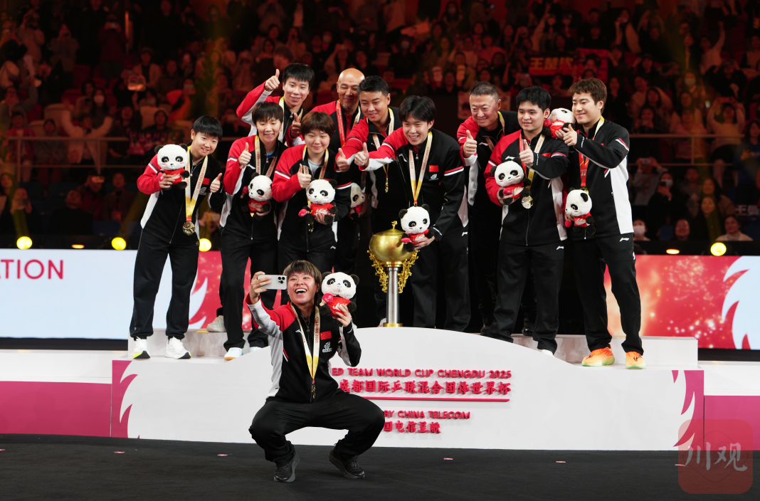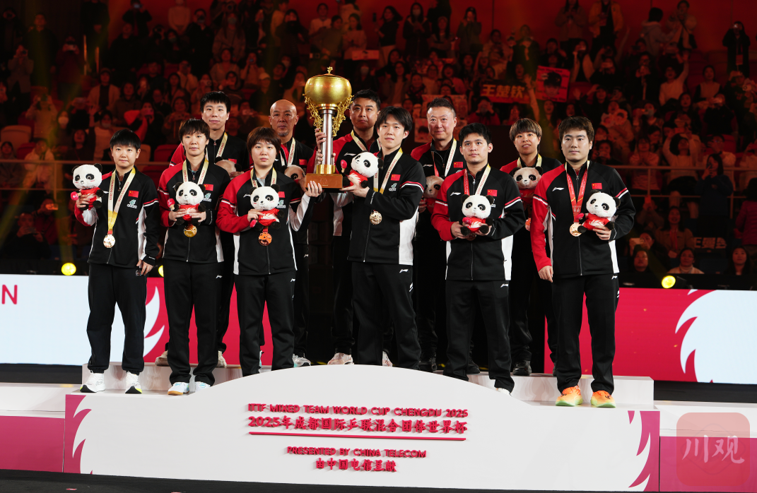 12月7日晚,2025年成都国际乒联混合团体世界杯总决赛在四川省体育馆落下帷幕。在决赛中,中国队以8比1战胜日本队获得赛事冠军,也在该项赛事中实现三连冠。