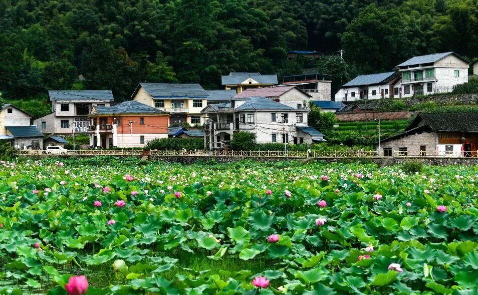 贵州省岑巩县客楼镇下寨村民居与荷塘图源:新华社