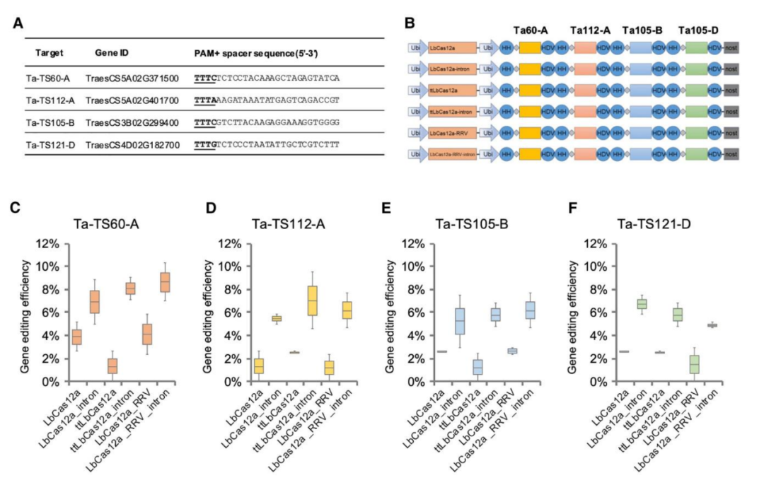 多目标验证:在多个小麦基因(Ta-TS60-A、Ta-TS112-A等)上进行编辑验证。