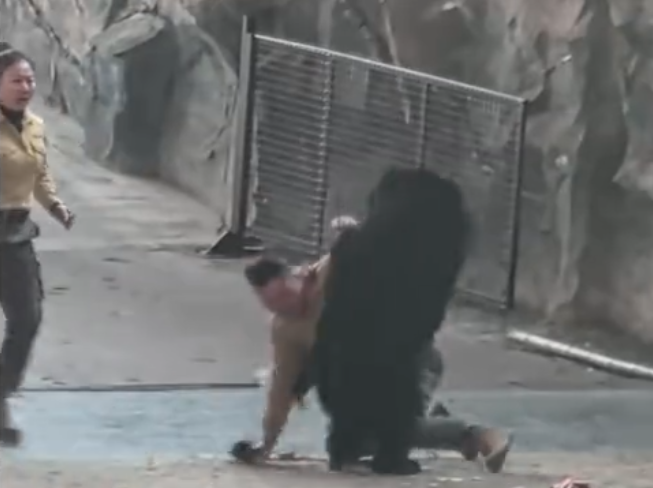 7日,记者从杭州野生动物世界获悉,被扑倒的表演者也系黑熊饲养员,饲养员随身带了黑熊爱吃的食物,黑熊看到后兴奋扑上去抢食。