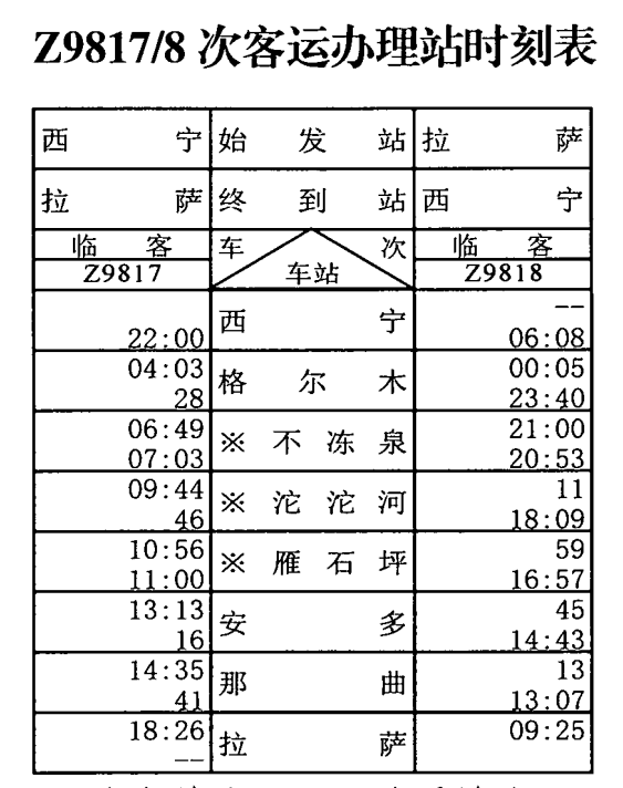 12月12日至12月31日,拉萨至西宁间加开Z9818次临时旅客列车。