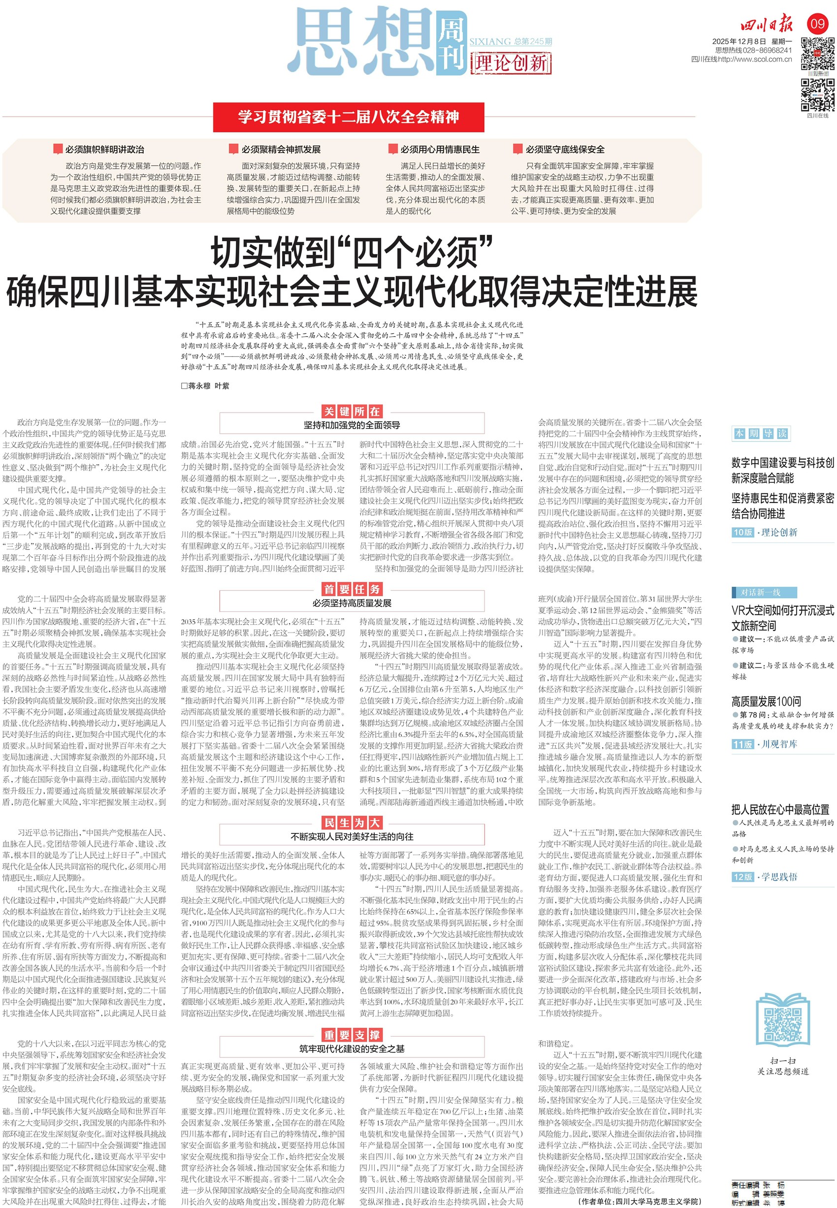 学习贯彻省委十二届八次全会精神 | 切实做到“四个必须” 确保四川基本实现社会主义现代化取得决定性进展