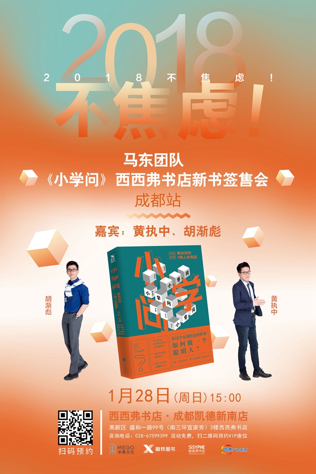 当黄执中遇上胡渐彪,两人会擦出什么样的火花呢?不过这一次,他们不是来battle的。1月28日,黄执中与胡渐彪将带着新书《小学问》做客成都,从游戏、健身、职场、恋爱等场景切入,带你认识焦虑、缓解焦虑、战胜焦虑!如果你也被焦虑困扰已久,快来现场跟“黄少爷”与“胡学长”取经吧!