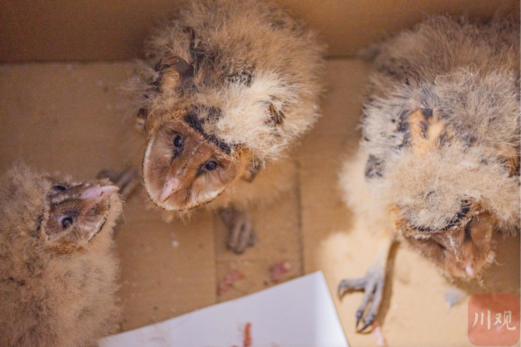 泸县太伏镇自然资源所接到报告后,启动了应急机制。工作人员在向李某普及野生动物保护知识、充分肯定其救助行为的同时,联合村级力量将幼鸟安全转运至镇政府进行临时照料。经泸县自然资源和规划局及泸州市野生动物收容救护点专家鉴定,这三只幼鸟确认为国家二级保护动物——猴面鹰(学名:草鸮)。