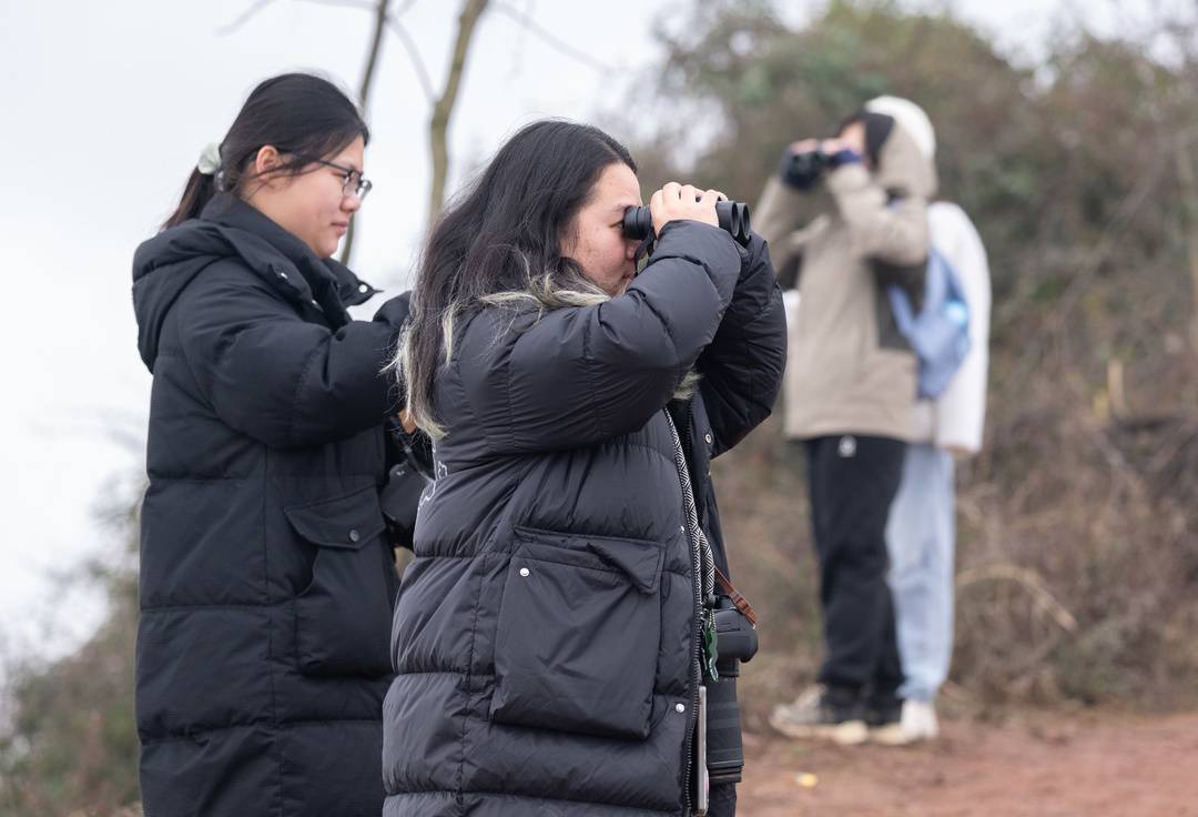 2025年3月8日,乍暖还寒的龙泉山上,志愿者“墨鱼”和“荀荀”手拿望远镜和照相机望向东北方向天空,开展监测工作。3月8日开始,志愿者团队首次面向全国招募驻点志愿者相继就位,开始了春秋两季长达74天的驻点监测。从春寒料峭到烈日当空,来自四川、广州、上海、北京等地的31位志愿者前赴后继吃住在龙泉山,耐心蹲守迁徙猛禽。他们当中有休假的公司职员,也有放暑假的大学生,20-29岁的志愿者成为主力军。除了驻点志愿者,还有400多位志愿者先后多次来到监测点守候迁徙猛禽,使得2025年全年监测数达到932人次。龙泉山监测点在国内观鸟群体中已享受一定声誉,陆续有省内外观鸟爱好者慕名而来。