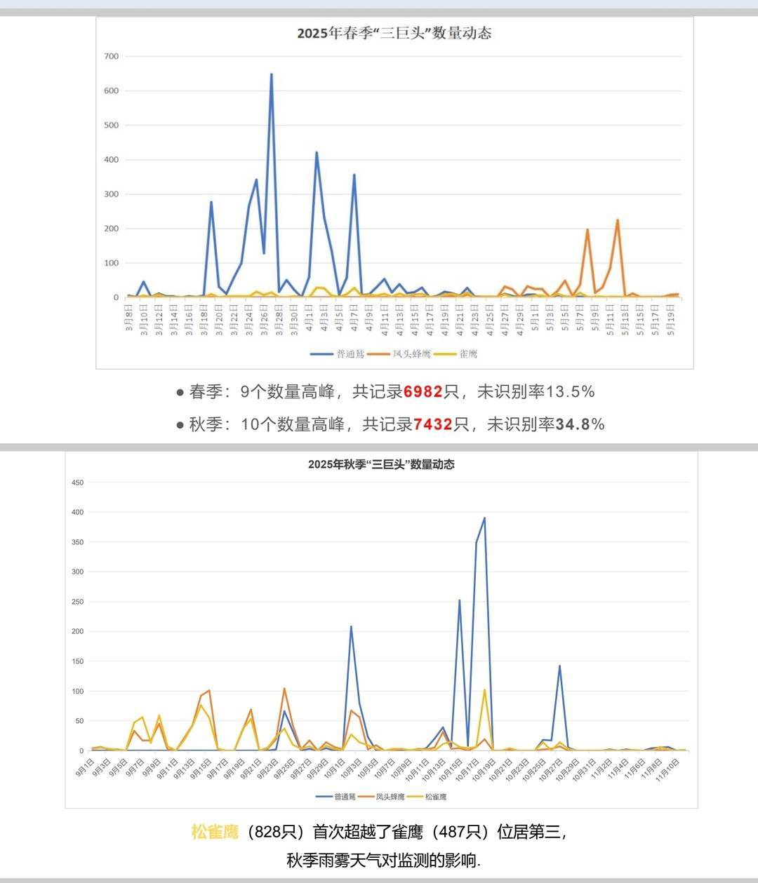 2025成都龙泉山迁徙猛禽数量靠前的三种猛禽数量动态 成都龙泉山迁徙猛禽监测志愿者团队制图