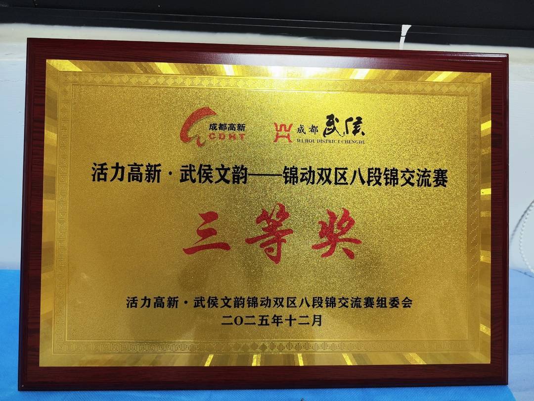 12月7日下午,一场充满活力与文化韵味的八段锦交流赛在成都高新区中和街道和谐广场精彩上演。活动由成都高新区卫生健康局、成都高新区总工会、成都高新区教育体育局、成都市武侯区卫生健康局、成都市武侯区总工会主办。成都高新区芳草社区卫生服务中心团队积极参与,凭借出色的表现荣获团体三等奖。