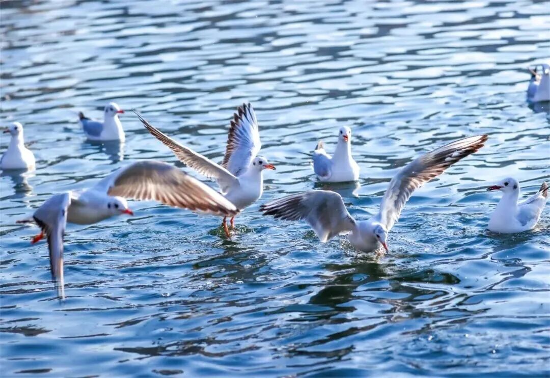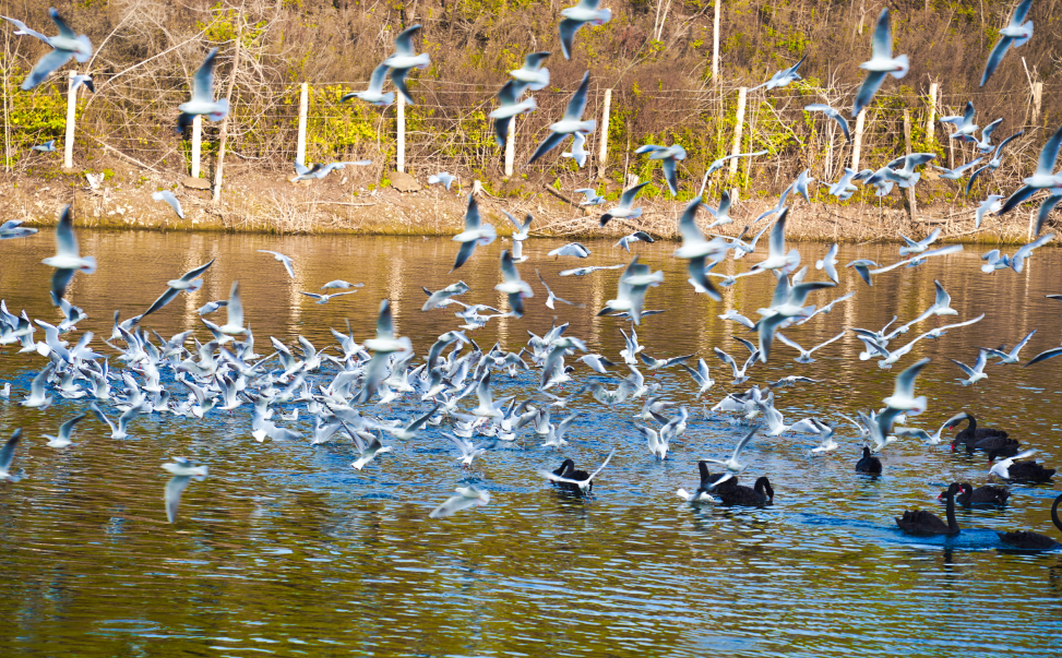 丹江口水库是南水北调中线工程的“大水缸”,这里水质透明,水面宽阔,风平浪静,气候适宜,空气清新,日照量高,是红嘴鸥释放天性、回归自然的最好去处。