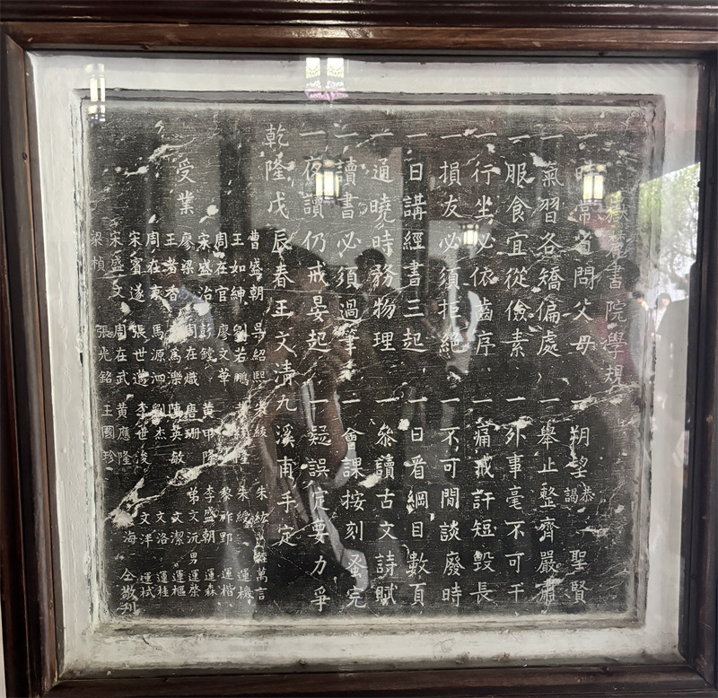 岳麓书院讲堂墙壁上镶嵌的《岳麓书院学规》。(漆世平 摄)