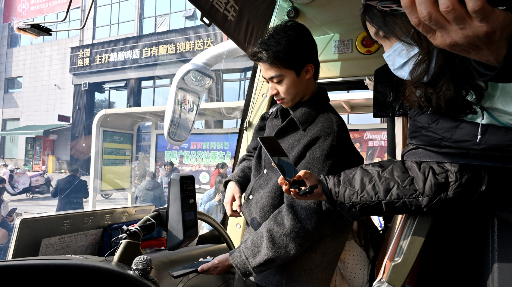 “车来了!”乘客程明国一早就等在这里,看见快巴驶入站台,顿时笑了。“我是来‘踩点’的,明天去重庆,今天先认认地方。”