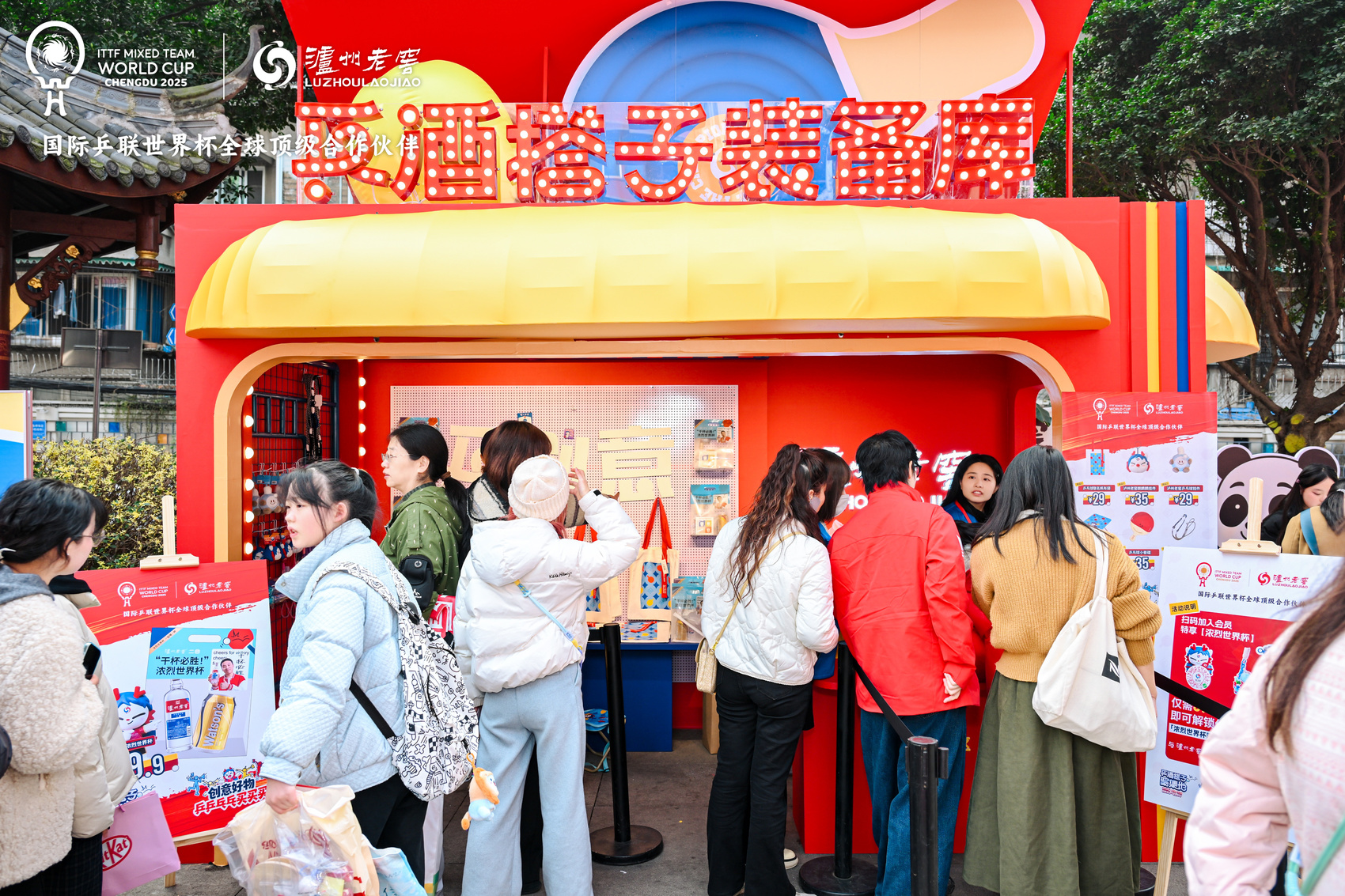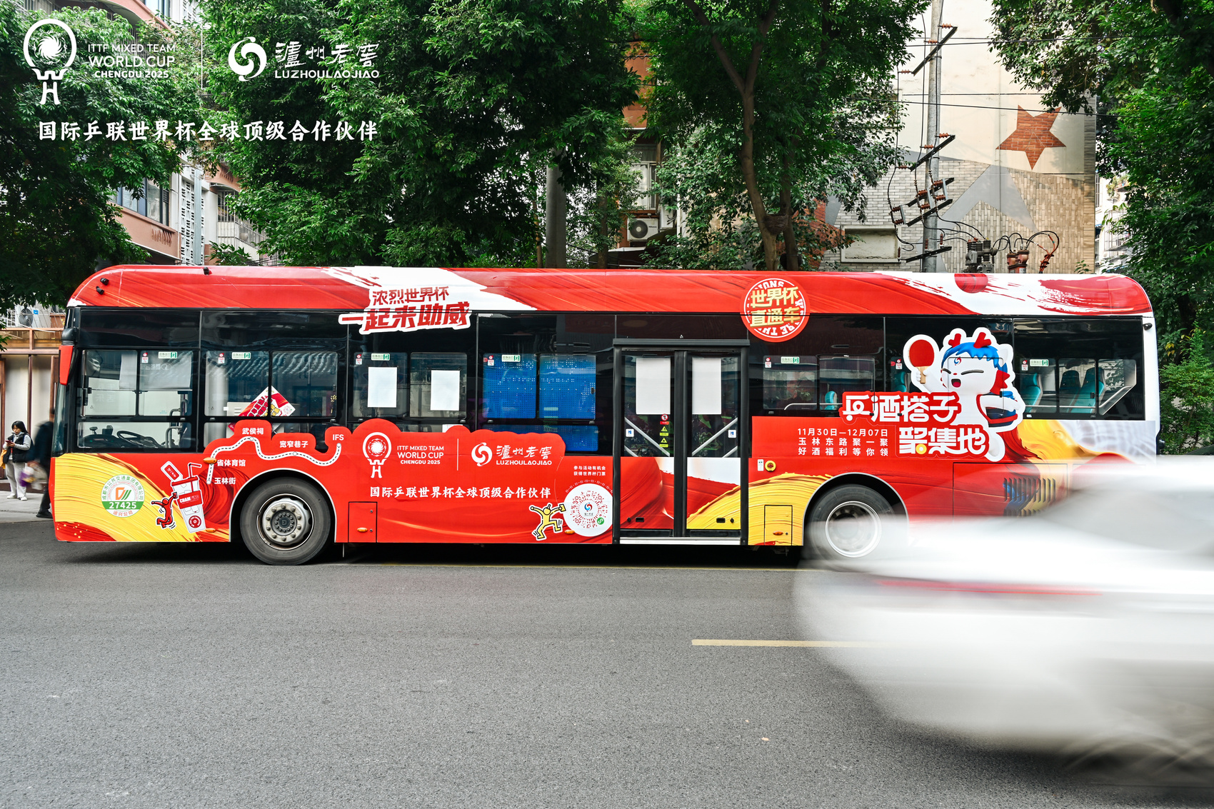 赛场外,除玉林路“乒酒搭子聚集地”,在成都市地铁体育馆站通道、通往赛场的旅游大巴等处,处处可见泸州老窖身影。