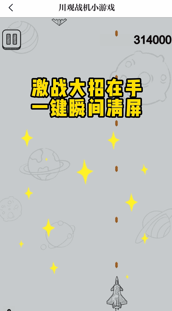 敌机如潮涌来,速度不断加快……在川观战机中驾驶“歼-20”蓄力集结,释放终极蓄力炮,顷刻之间横扫屏幕,畅快无双!