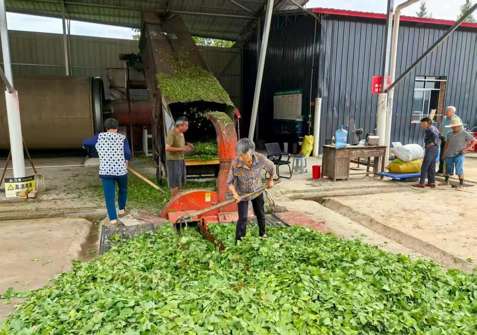 种得出,还要卖得好、收益高。2021年,石滩镇建起一座现代化的银杏叶烘干厂。“3斤鲜叶才能烘干出1斤干叶,但价值却是原来的3倍以上。”杨嵩算了一笔账:烘干厂建成前,全镇银杏产业年产值仅约100余万元。而如今,经过标准化烘干加工,干叶单价可达每吨1.8万元。按今年预计的280吨干叶产量计算,仅烘干叶产值就已突破450万元。“这还不包含土地流转、基地务工等为村民带来的其他收入。”