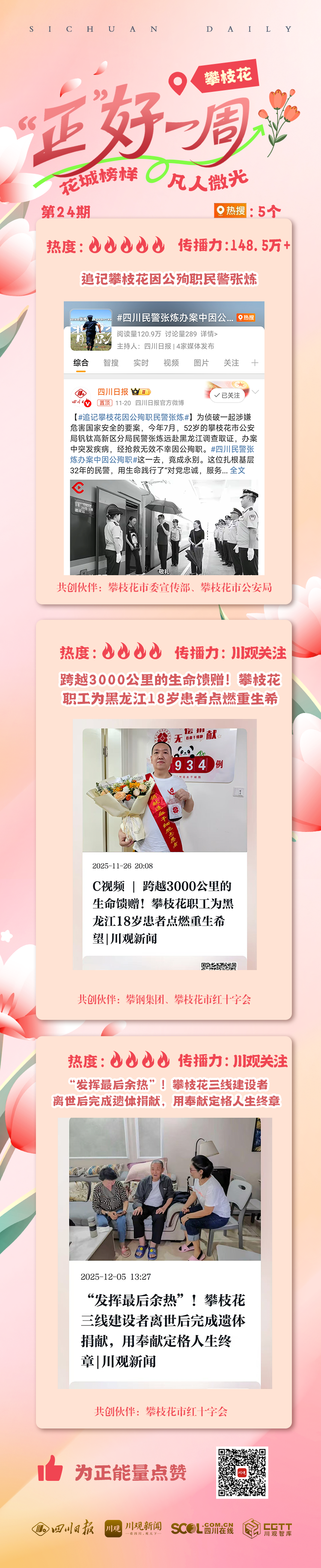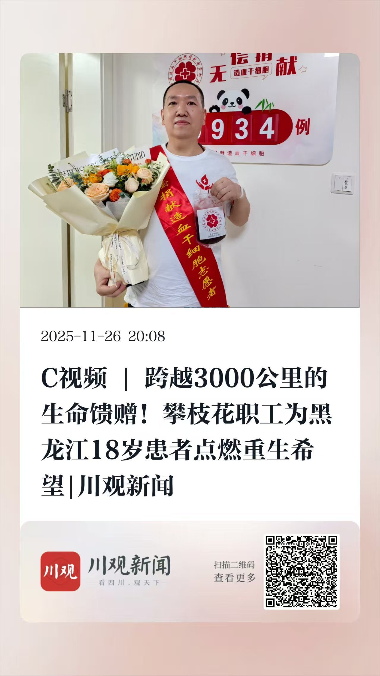 另一边,攀钢集团矿业有限公司朱兰铁矿分公司职工田大国,跨越近3000公里的距离,奔赴黑龙江省,为一名18岁的血液病患者送去“生命火种”。