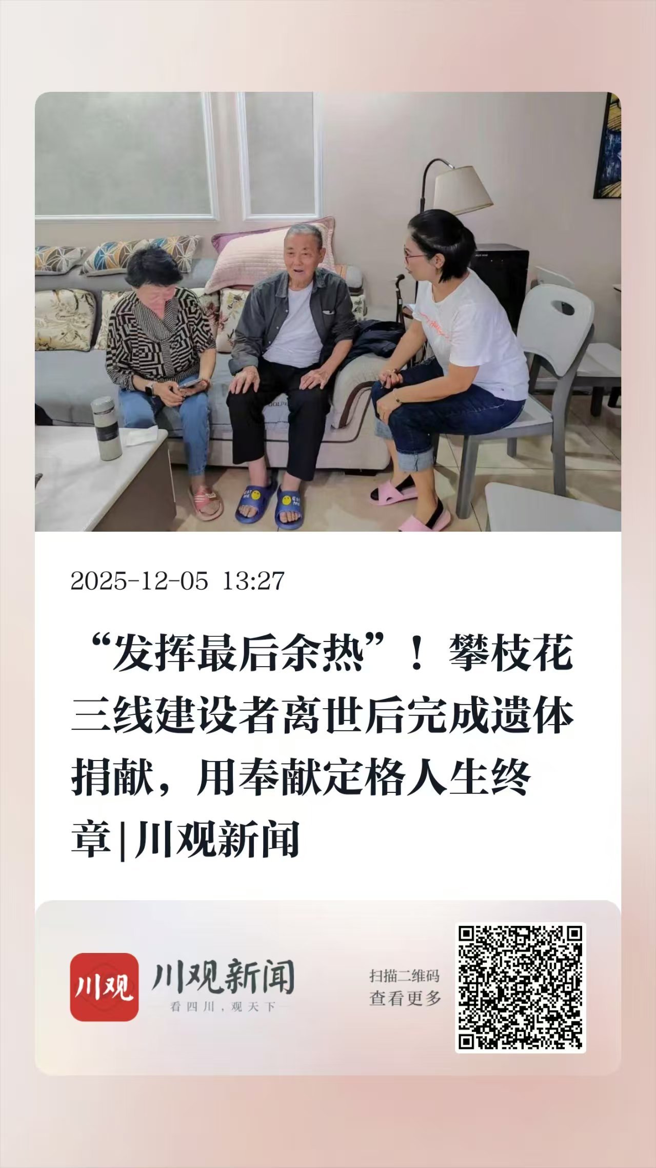 肖成基是四川成都人,1966年响应三线建设号召来到攀枝花。11月28日下午5时,攀枝花市东区88岁退休干部肖成基安然离世。遵照其遗愿,他的遗体在家人和攀枝花市红十字会工作人员的见证下,由攀枝花学院医学院接收,顺利完成捐献,用奉献定格人生终章。