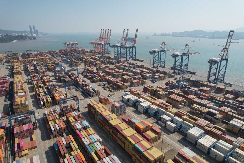 12月8日拍摄的福建厦门海沧嵩屿集装箱码头(无人机照片)。