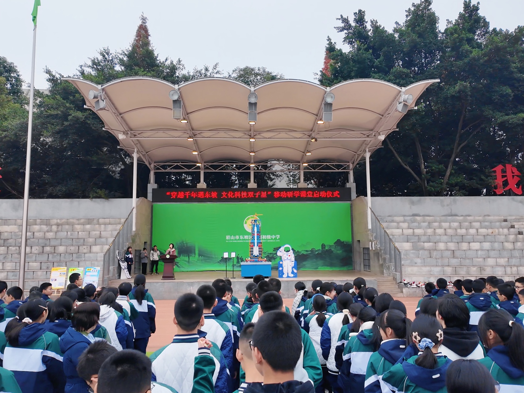 “五、四、三、二、一,点火!”12月8日,眉山市东坡区苏祠中学操场上,随着倒数声响起,一枚“小火箭”腾空而起,围观的同学们仰头惊呼。当天,由眉山东坡宋城文化旅游发展有限公司推出的“穿越千年遇东坡 文化科技双子星”移动研学课堂在眉山苏祠中学启动,一场别开生面的“文化+科技”跨界研学体验就此拉开序幕。