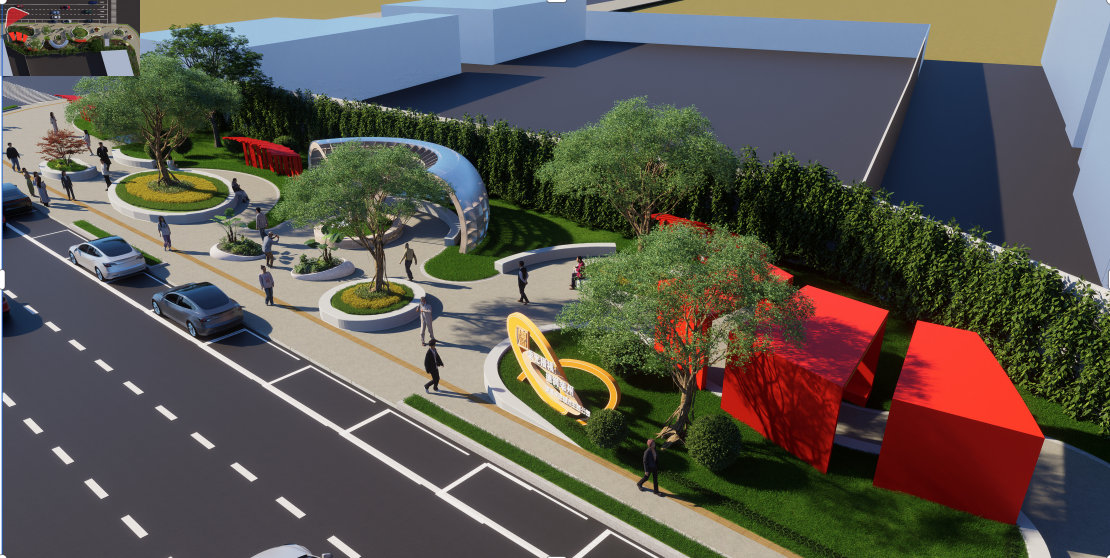 “目前地面垫层已全部硬化,绿化区与休闲区的界限清晰划分,树池和休闲坐凳的框架也已搭建完成,其中绿化地占比达45%,未来这里将绿植环绕、景致雅致。”施工负责人周文棋指着初具雏形的场地介绍道,项目后续将加快土建收尾和文化展示设施安装,预计5个月工期即可完工。
