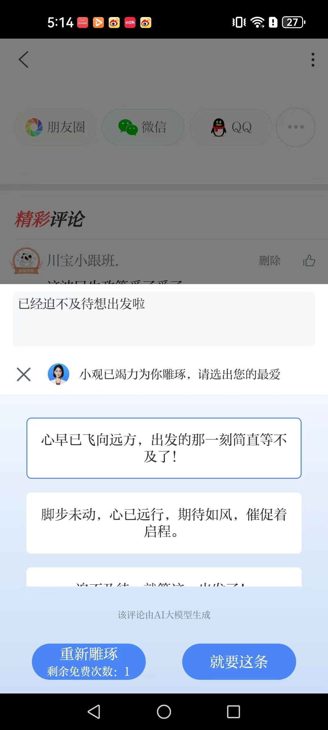 评论区下方新增“AI雕琢”按钮