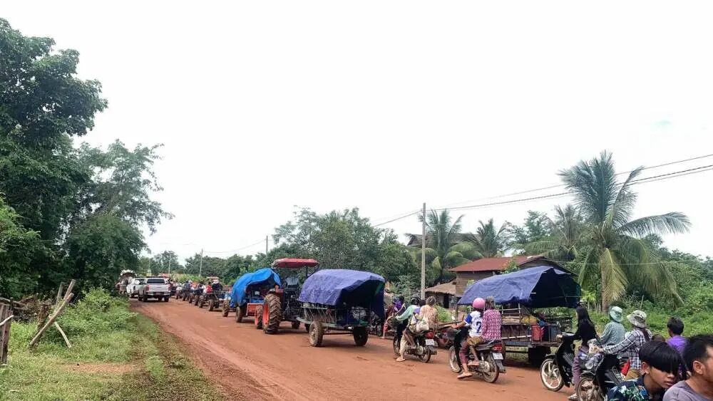 这是7月24日拍摄的柬埔寨奥多棉吉省边境地区正在撤离的民众。新华社发