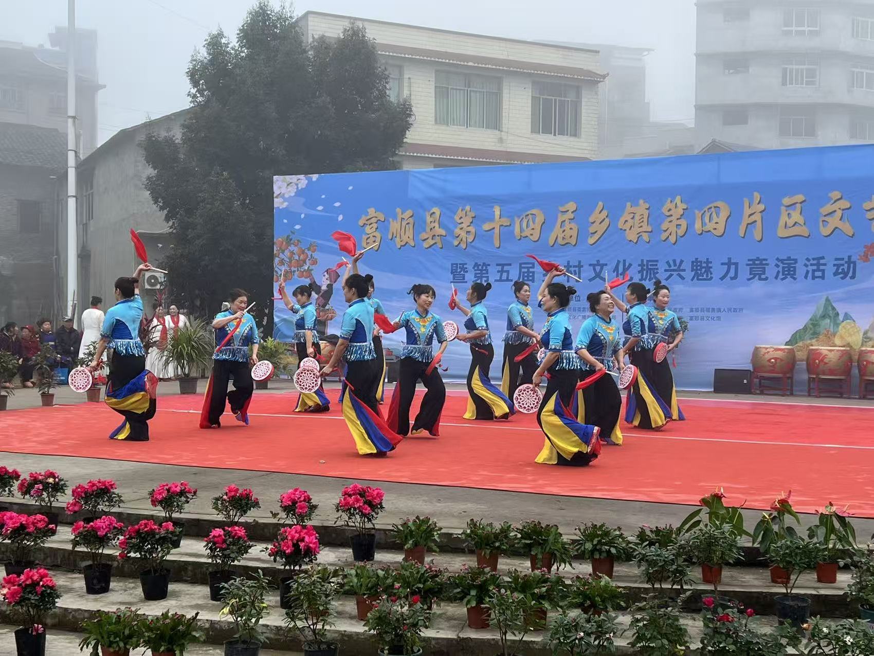 12月5日,富顺县第十四届乡镇文艺调演暨第五届乡村文化振兴魅力竞演活动在板桥镇文化广场举行。本次活动以“柑橘飘香聚板桥 文艺竞演绘振兴”为主题,汇聚了板桥镇、福善镇、李桥镇的众多文艺队伍,通过丰富多彩的表演生动展现乡村新风貌。