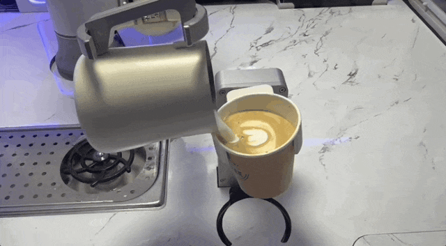 隔壁的安诺AI拉花咖啡机器人化身咖啡店员,机械臂精准运转,完成拿杯、接咖啡、拉花等一系列操作,1分多钟,一杯拉花咖啡便递到观众手中。“味道很正,制作又快,能感受到中国智能制造的硬实力。”市民徐先生赞叹道。