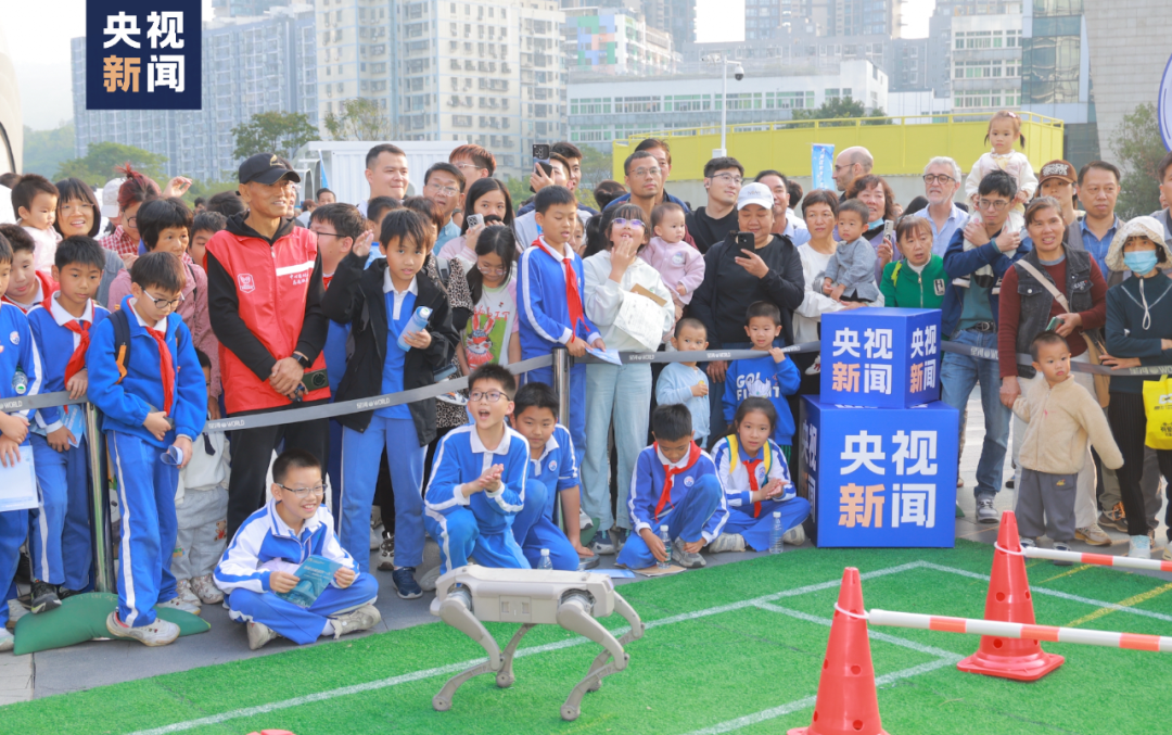 活动现场穿梭着许多中小学生的身影。有的专注地看着机器人跳舞,有的兴奋地和机器狗一起奔跑,还有的围着研发人员问问题……这里已不仅是展演现场,更成为很多学生的“校外科技课堂”。深圳市龙岗区多所学校特意组织三百余名小学生分批前来,在机器人街区上了一堂“最前沿的科技课”。