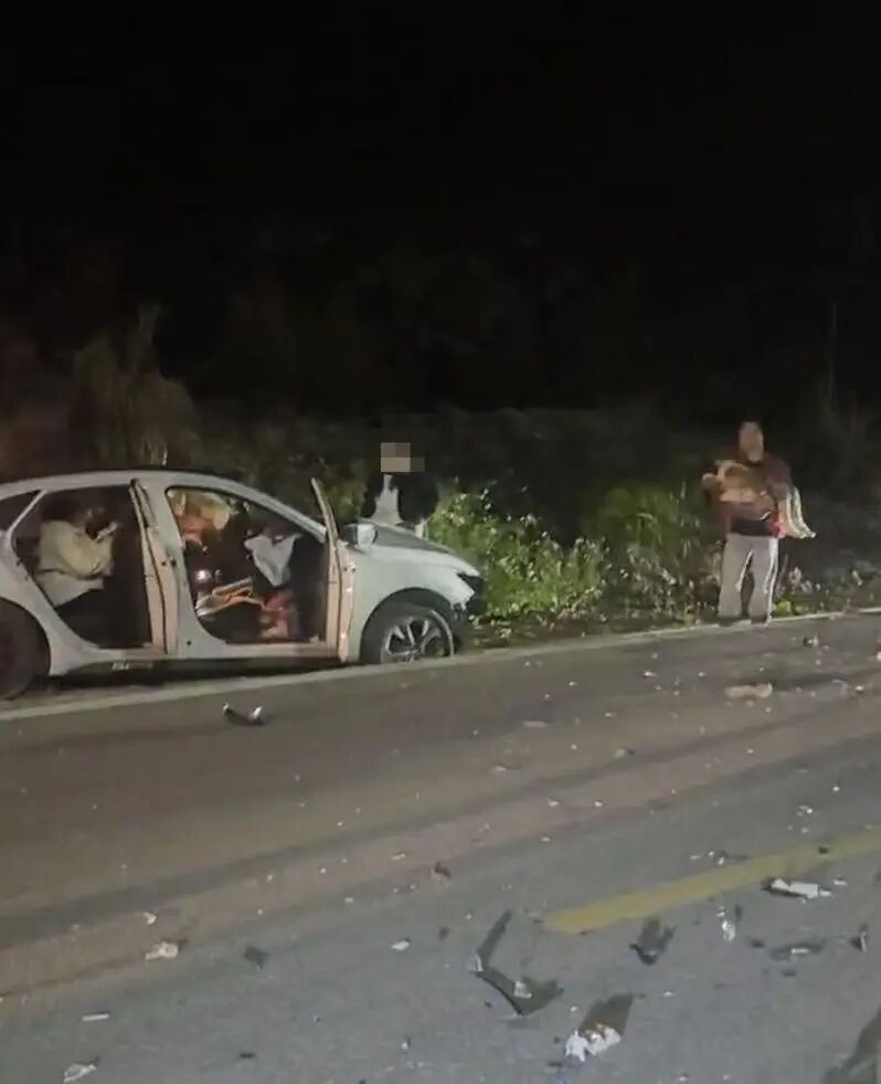行至三排镇连水村路段时,林火路注意到前方出现交通事故,两辆车迎头相撞,车头严重变形,碎片散落一地。