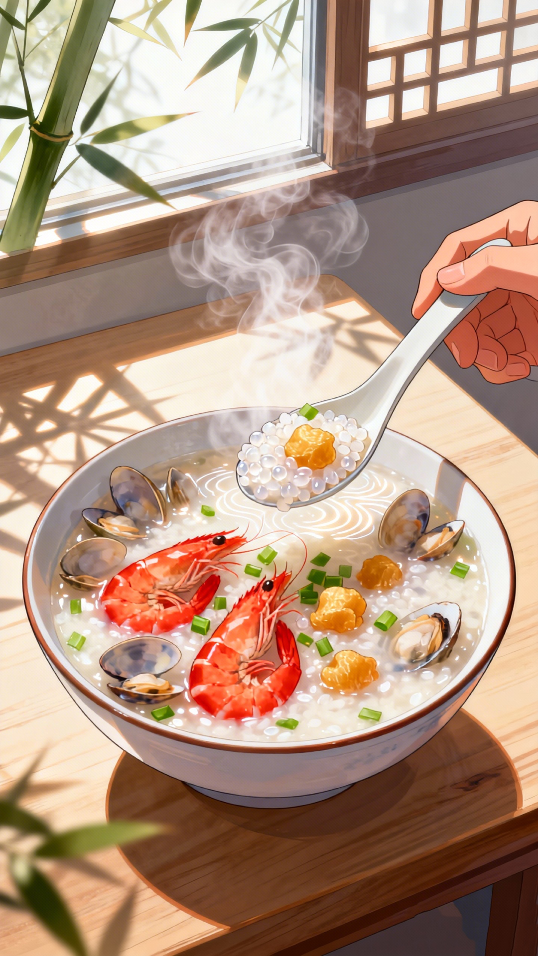 粥,是最朴素、也最包容的养生食材。只需一捧清水,一把米,经耐心与时间的守候,便成为一碗醇厚绵滑的暖流,能妥帖地安抚脾胃,默默地滋养气血。这般滋养带来的身心清健,从容安然,或许便是诗中 “养身心” 的真谛。理想的养生状态是能在一饮一啄的日常饮食中寻得平衡,在简单知足的生活节奏里体会安然。