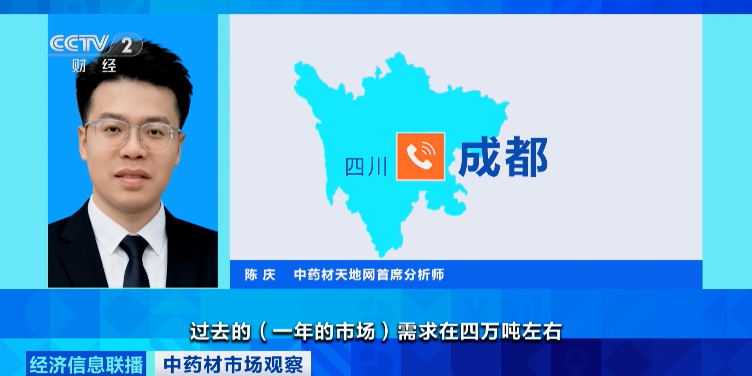 中药材天地网首席分析师 陈庆:最近比较热的黄精,过去一年的市场需求在四万吨左右,如今在药食同源的开发下,它的需求已经增到了八万吨,因为保健、食用的需求还比较大,所以价格有一定的需求支撑。