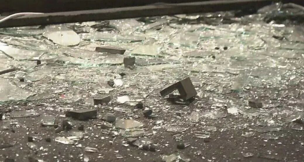 △当地时间8日,日本青森县八户市一酒店地震后,玻璃破碎并散落了一地。