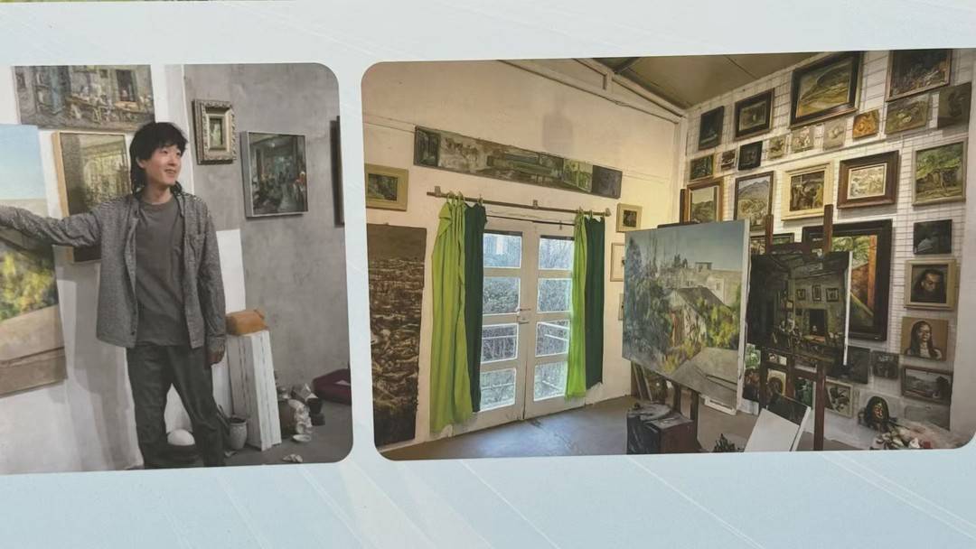 “我当时就想找个安静、宽敞,能让我静下心来画画的地方。”李明回忆道。从学校宿舍骑车过来仅需10分钟,房租低廉甚至早期房主都没收钱。这一次偶遇,成就了长达十多年的缘分,李明成为泗义村的第一位“新村民”。
