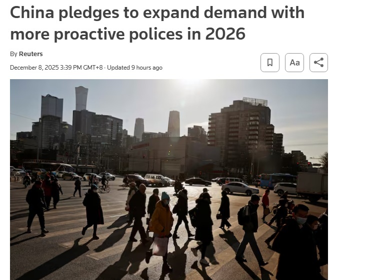 12月8日,中共中央政治局召开会议,分析研究2026年经济工作。会议释放明确信号:明年将实施更加积极有为的宏观政策,持续扩大内需、优化供给,因地制宜发展新质生产力等。相关内容一经公布,随即引发海外媒体的高度关注。