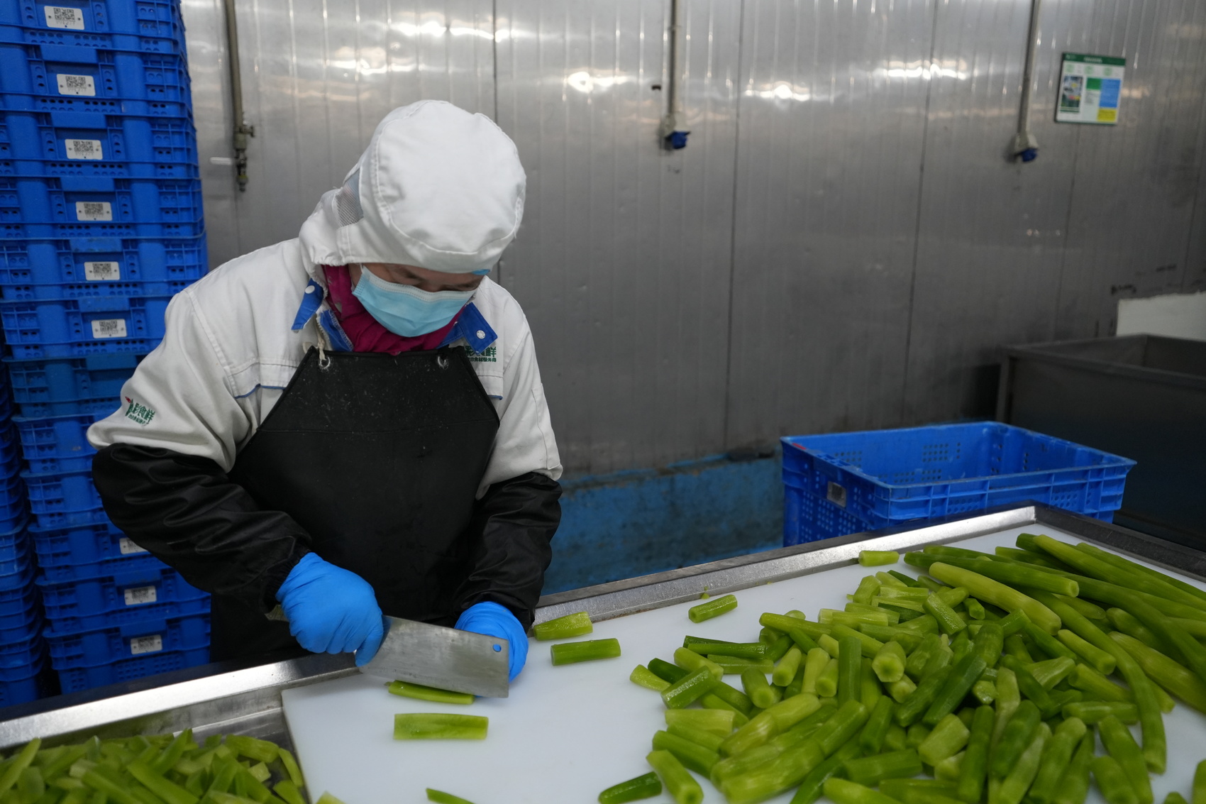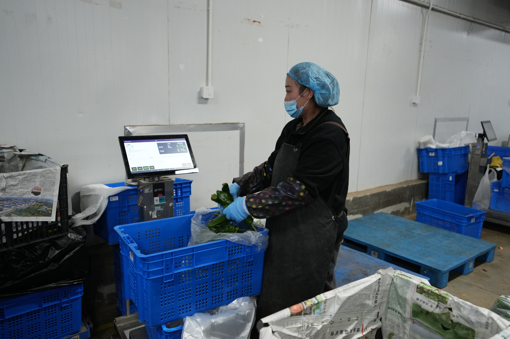 毛菜加工车间里,工作人员分选食材环节也纳入数据化系统进行管理。